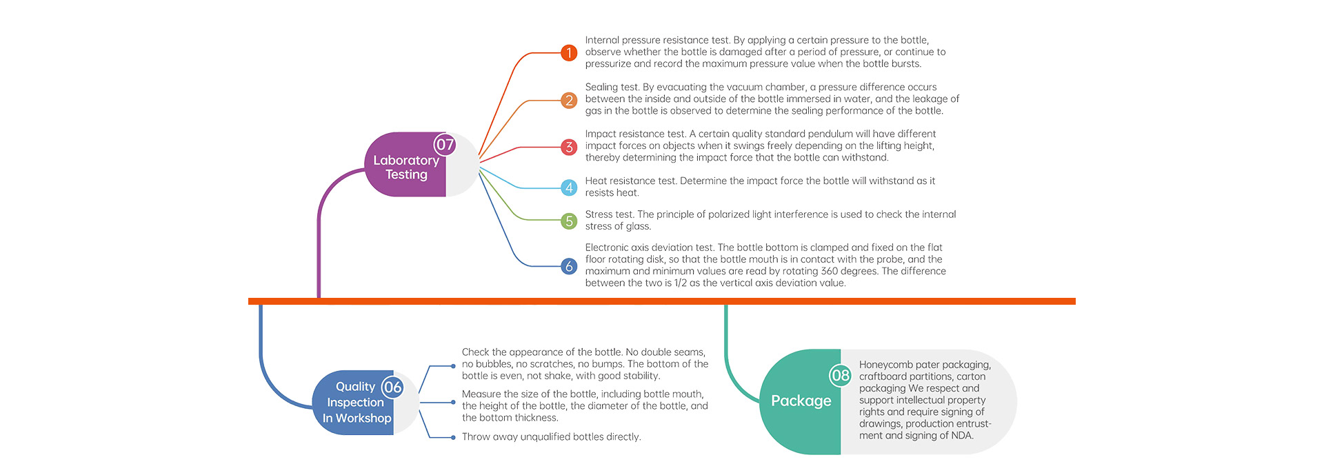 As a professional glass bottle factory, we are the only supplier who provides all services including bottles, caps, decorations, lids, cartons, and adhesive caps. Customers only need to provide the creative design, we are responsible for turning it into bottle artwork.